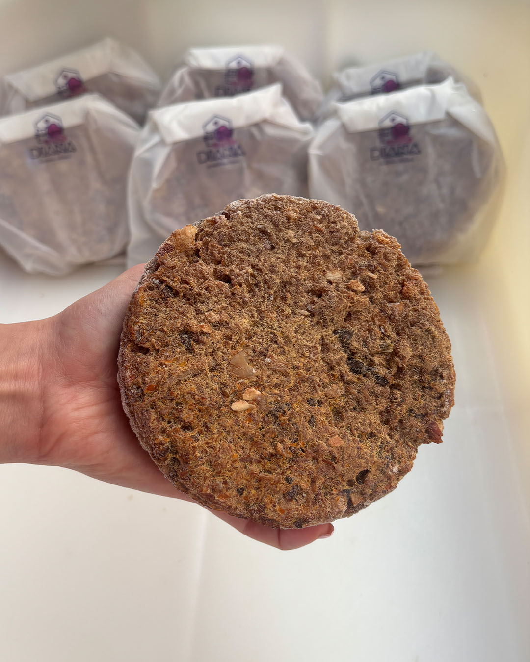 Pensado para los perritos que no pueden consumir pollo ni vaca, para los tutores que no se animan a suministrar alimento crudo, para los tutores veganos o vegetarianos que no pueden manipular el alimento de su carnívoro, y también para todos aquellos que no tienen tiempo y/o ganas de cocinar